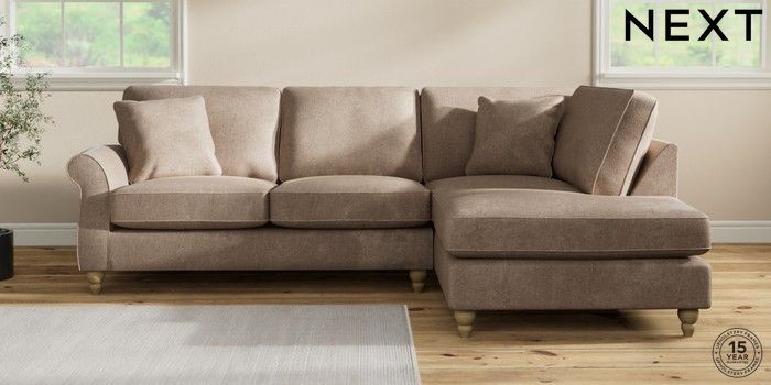 7.2.10 Ashford Medium Corner Chaise - Right Hand Plush Chenille Mid Natural Low Turned - Light | Made Click here to use our website with more accessibility support, for example screen readers