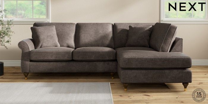 7.2.10 Ashford Medium Corner Chaise - Right Hand Plush Chenille Mink Brown Modern Turned Metal Cap - Mid | Made Click here to use our website with more accessibility support, for example screen readers