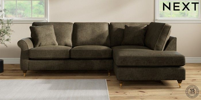 7.2.10 Ashford Medium Corner Chaise - Right Hand Plush Chenille Moss Green Castor - Mid | Made Click here to use our website with more accessibility support, for example screen readers