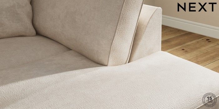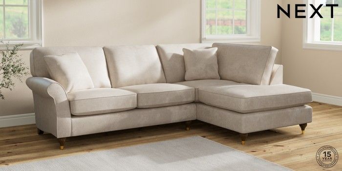 7.2.10 Ashford Medium Corner Chaise - Right Hand Plush Chenille Oyster Modern Turned Metal Cap - Mid | Made Click here to use our website with more accessibility support, for example screen readers
