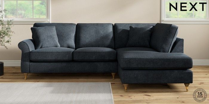 7.2.10 Ashford Medium Corner Chaise - Right Hand Plush Chenille Slate Blue Castor - Light | Made Click here to use our website with more accessibility support, for example screen readers