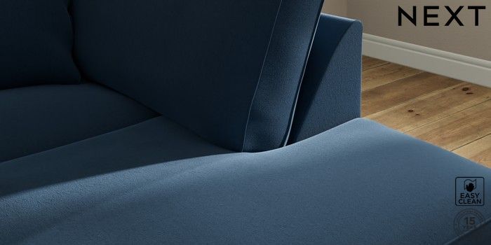 7.2.10 Ashford Medium Corner Chaise - Right Hand Plush Velvet Easy Clean Airforce Blue Castor - Light | Made Click here to use our website with more accessibility support, for example screen readers