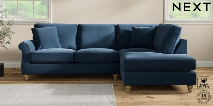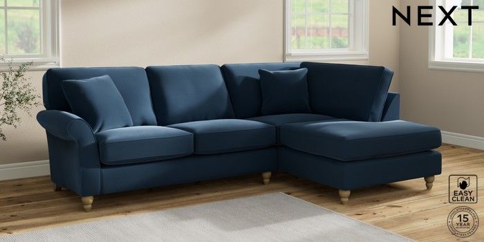7.2.10 Ashford Medium Corner Chaise - Right Hand Plush Velvet Easy Clean Airforce Blue Low Turned - Light | Made Click here to use our website with more accessibility support, for example screen readers