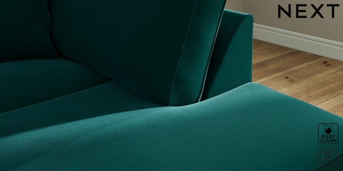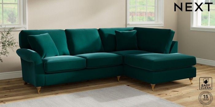 7.2.10 Ashford Medium Corner Chaise - Right Hand Plush Velvet Easy Clean Juniper Green Castor - Light | Made Click here to use our website with more accessibility support, for example screen readers