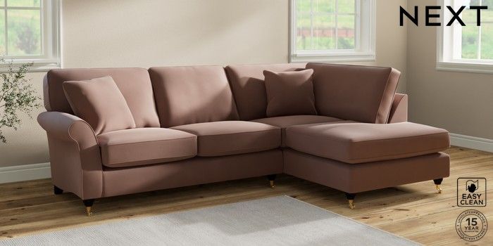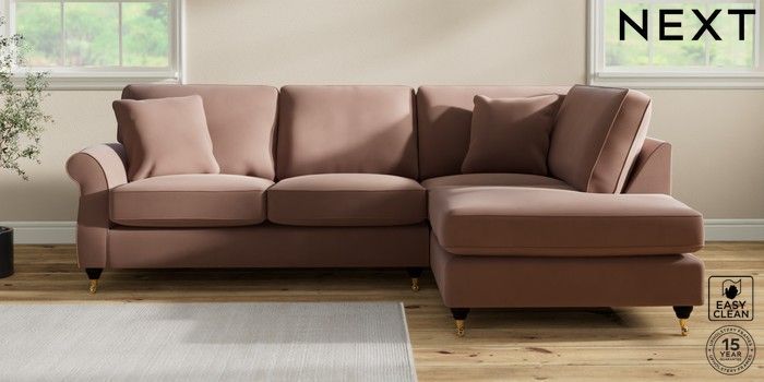 7.2.10 Ashford Medium Corner Chaise - Right Hand Plush Velvet Easy Clean Mid Natural Castor - Dark | Made Click here to use our website with more accessibility support, for example screen readers