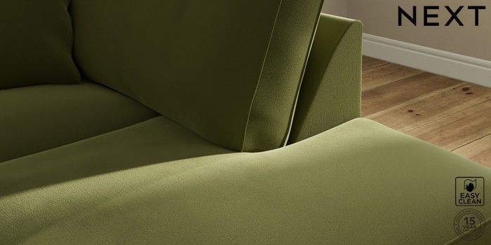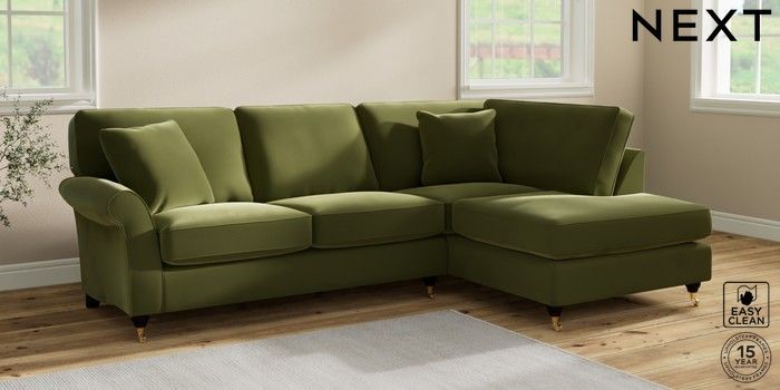 7.2.10 Ashford Medium Corner Chaise - Right Hand Plush Velvet Easy Clean Mid Olive Green Castor - Dark | Made Click here to use our website with more accessibility support, for example screen readers