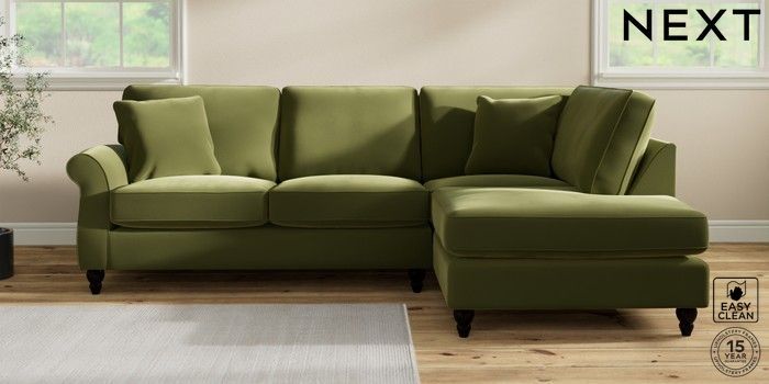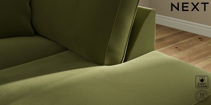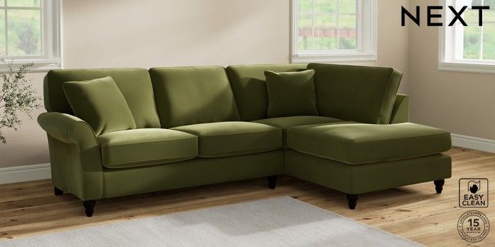 7.2.10 Ashford Medium Corner Chaise - Right Hand Plush Velvet Easy Clean Mid Olive Green Low Turned - Dark | Made Click here to use our website with more accessibility support, for example screen readers