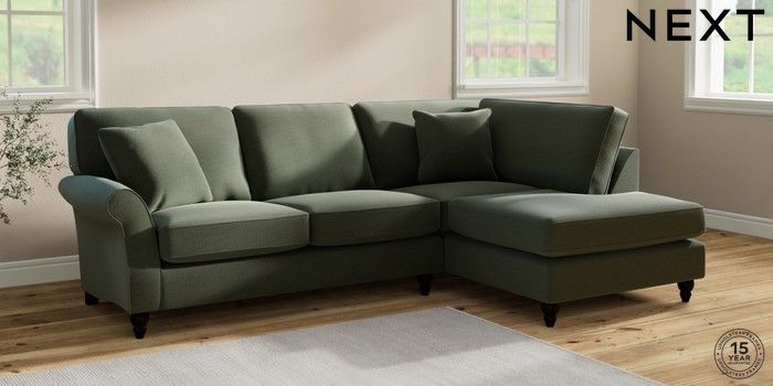 7.2.10 Ashford Medium Corner Chaise - Right Hand Relaxed Linen Look Dark Green Low Turned - Dark | Made Click here to use our website with more accessibility support, for example screen readers