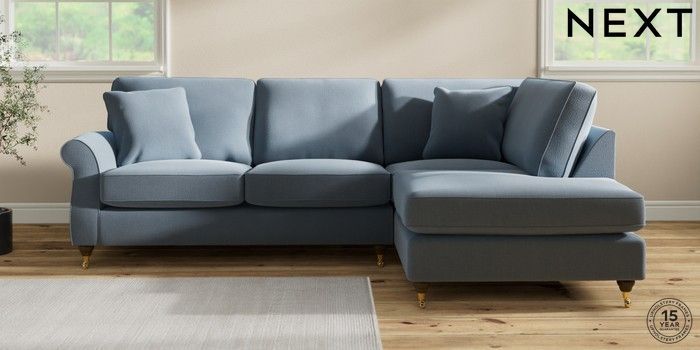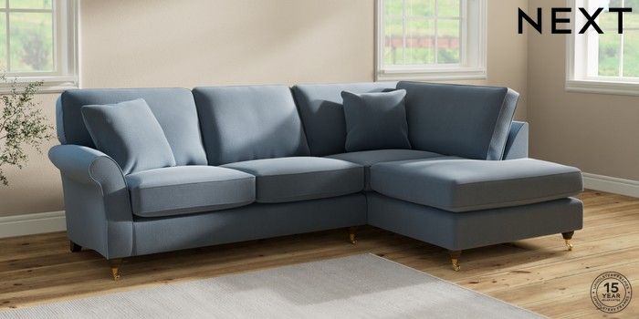 7.2.10 Ashford Medium Corner Chaise - Right Hand Relaxed Linen Look Mid Blue Castor - Mid | Made Click here to use our website with more accessibility support, for example screen readers