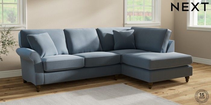 7.2.10 Ashford Medium Corner Chaise - Right Hand Relaxed Linen Look Mid Blue Low Turned - Mid | Made Click here to use our website with more accessibility support, for example screen readers