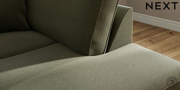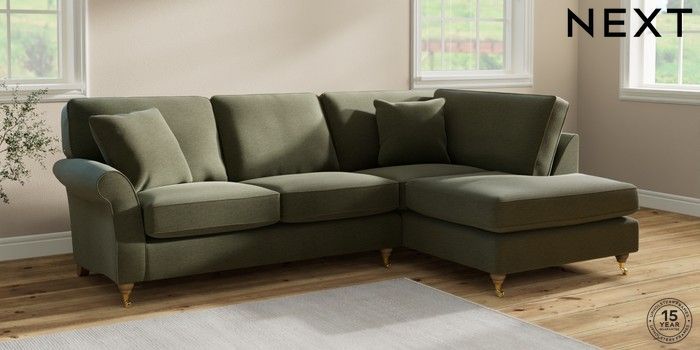 7.2.10 Ashford Medium Corner Chaise - Right Hand Ripple Chenille Mid Moss Green Castor - Light | Made Click here to use our website with more accessibility support, for example screen readers