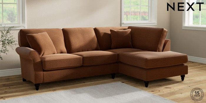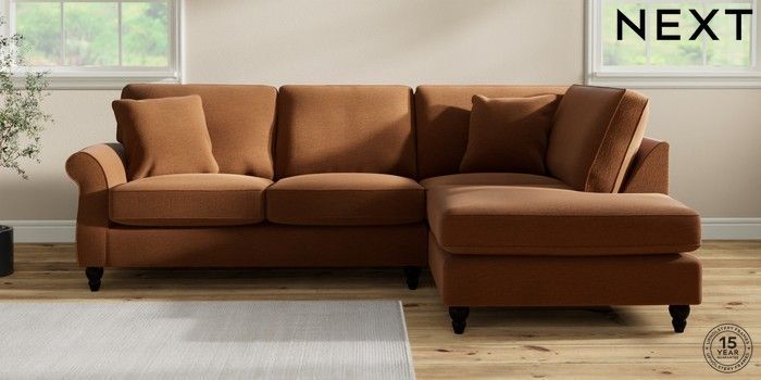 7.2.10 Ashford Medium Corner Chaise - Right Hand Ripple Chenille Mid Rust Brown Low Turned - Dark | Made Click here to use our website with more accessibility support, for example screen readers