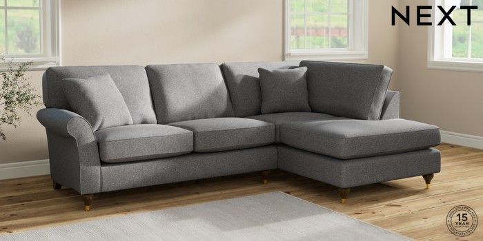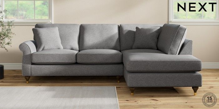 7.2.10 Ashford Medium Corner Chaise - Right Hand Studio Chenille Mid Grey Modern Turned Metal Cap - Mid | Made Click here to use our website with more accessibility support, for example screen readers