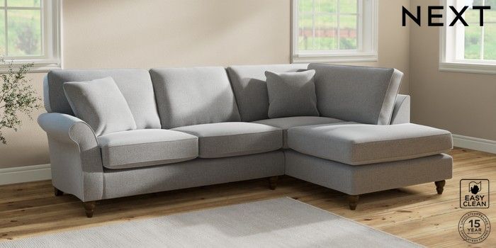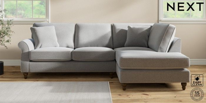 7.2.10 Ashford Medium Corner Chaise - Right Hand Tweedy Blend Easy Clean Light Silver Grey Low Turned - Mid | Made Click here to use our website with more accessibility support, for example screen readers