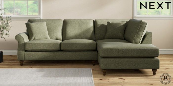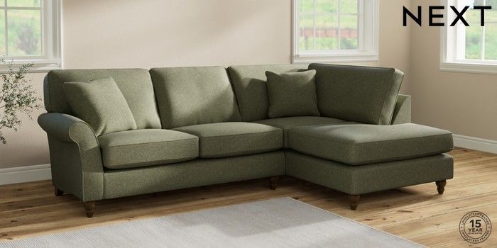7.2.10 Ashford Medium Corner Chaise - Right Hand Tweedy Chenille Mid Moss Green Low Turned - Mid | Made Click here to use our website with more accessibility support, for example screen readers