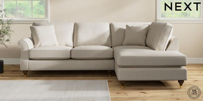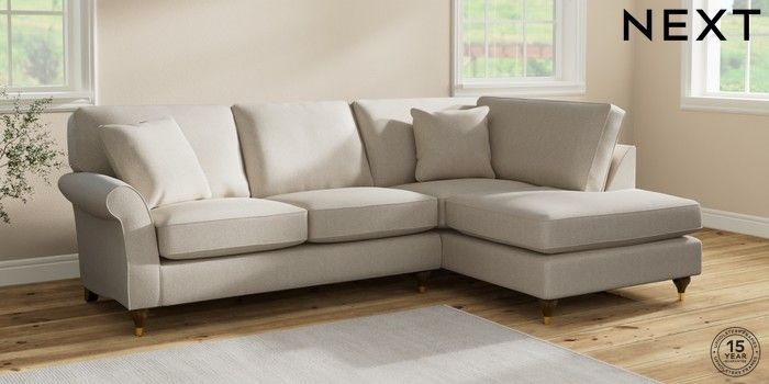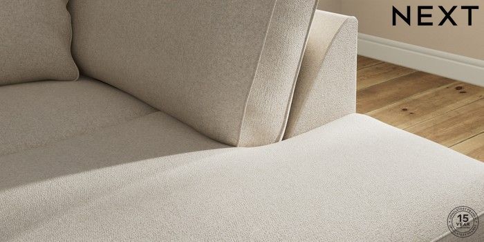 7.2.10 Ashford Medium Corner Chaise - Right Hand Tweedy Chenille Oyster Modern Turned Metal Cap - Mid | Made Click here to use our website with more accessibility support, for example screen readers