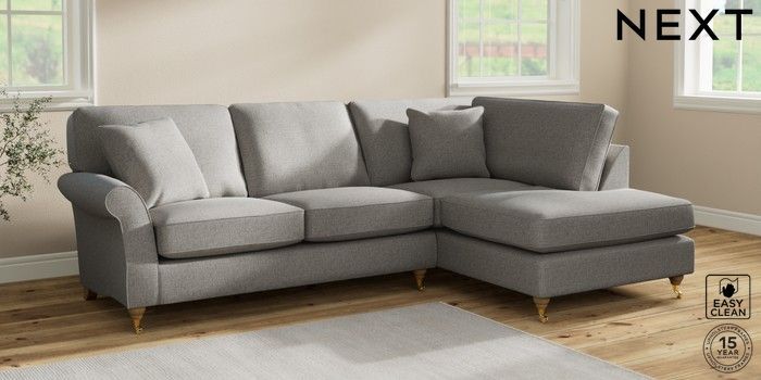 7.2.10 Ashford Medium Corner Chaise - Right Hand Woven Chenille Easy Clean Light Grey Castor - Light | Made Click here to use our website with more accessibility support, for example screen readers