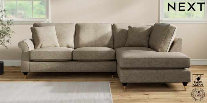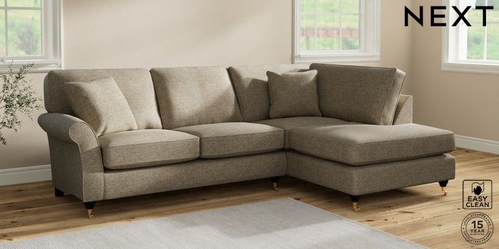 7.2.10 Ashford Medium Corner Chaise - Right Hand Woven Chenille Easy Clean Mid Natural Castor - Dark | Made Click here to use our website with more accessibility support, for example screen readers