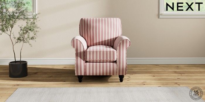 7.2.10 Ashford Small Armchair Bold Chenille Stripe Dark Pink Low Turned - Dark | Made Click here to use our website with more accessibility support, for example screen readers