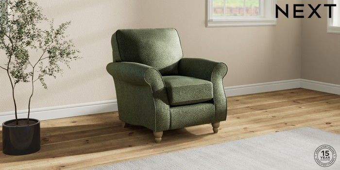 7.2.10 Ashford Small Armchair Boucle Chenille Dark Moss Green Low Turned - Light | Made Click here to use our website with more accessibility support, for example screen readers