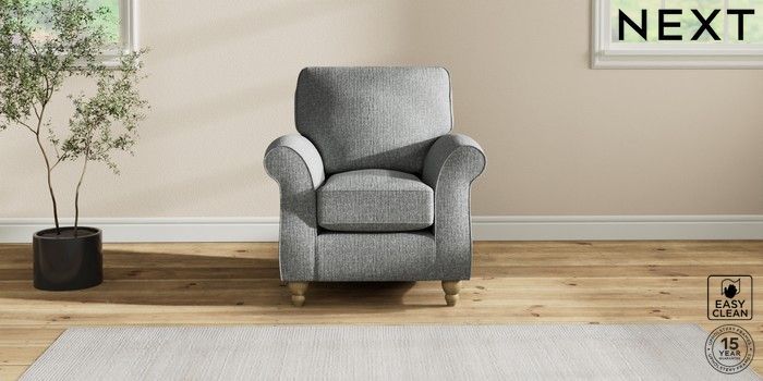 7.2.10 Ashford Small Armchair Chunky Boucle Easy Clean Mid Grey Low Turned - Light | Made Click here to use our website with more accessibility support, for example screen readers