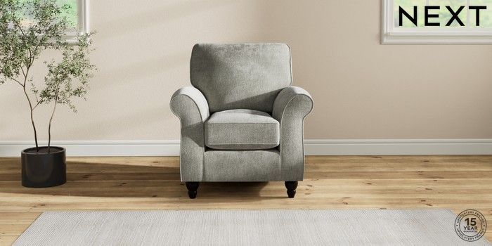 7.2.10 Ashford Small Armchair Chunky Chenille Light Grey Low Turned - Dark | Made Click here to use our website with more accessibility support, for example screen readers