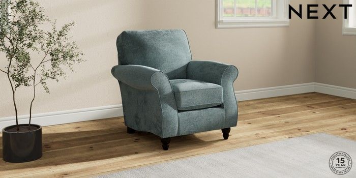 7.2.10 Ashford Small Armchair Chunky Chenille Light Teal Green Low Turned - Dark | Made Click here to use our website with more accessibility support, for example screen readers
