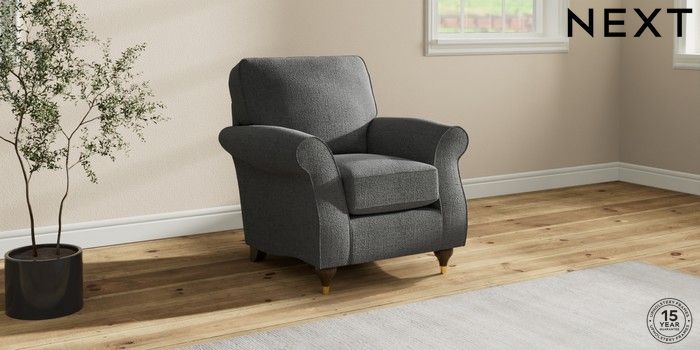 7.2.10 Ashford Small Armchair Chunky Texture Dark Grey Modern Turned Metal Cap - Mid | Made Click here to use our website with more accessibility support, for example screen readers