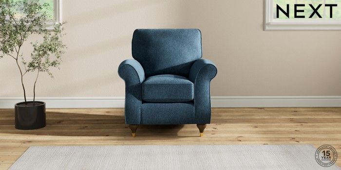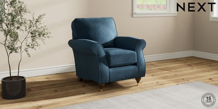 7.2.10 Ashford Small Armchair Cotswold Chenille Dark Blue Modern Turned Metal Cap - Mid | Made Click here to use our website with more accessibility support, for example screen readers