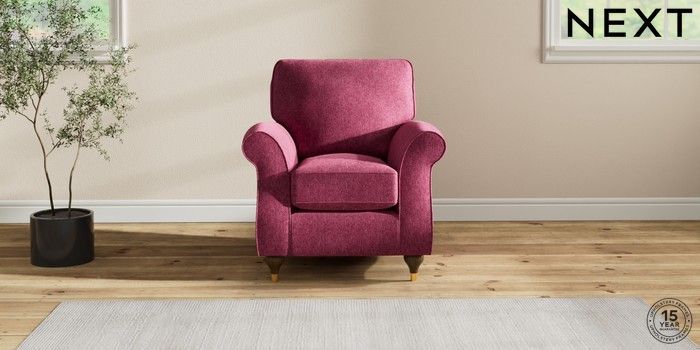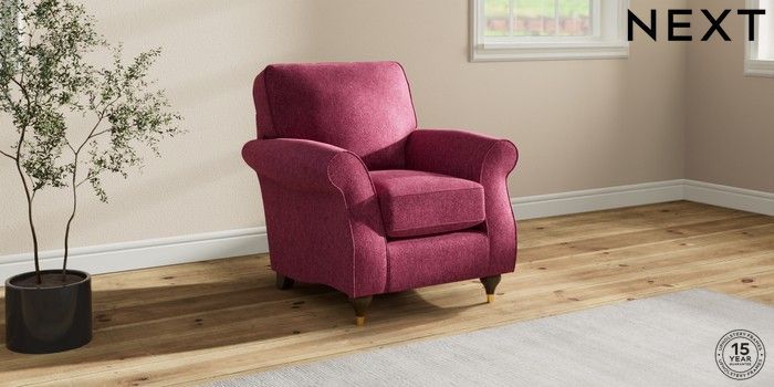 7.2.10 Ashford Small Armchair Cotswold Chenille Dark Raspberry Pink Modern Turned Metal Cap - Mid | Made Click here to use our website with more accessibility support, for example screen readers