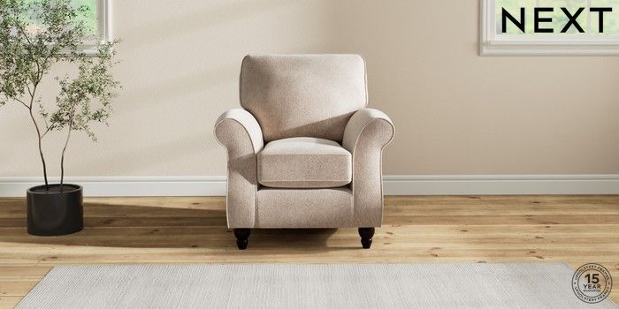 7.2.10 Ashford Small Armchair Cotswold Chenille Light Natural Low Turned - Dark | Made Click here to use our website with more accessibility support, for example screen readers