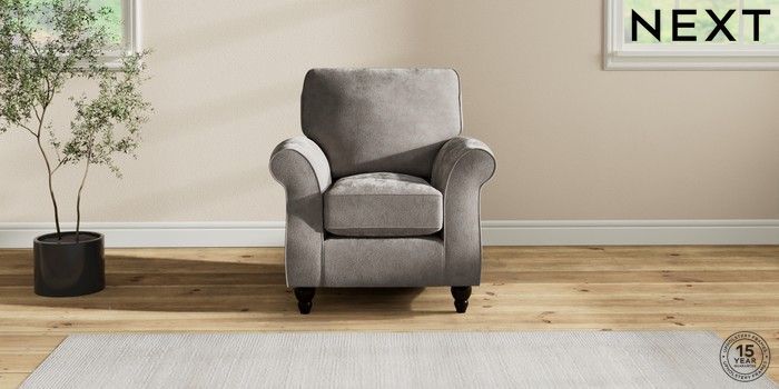 7.2.10 Ashford Small Armchair Distressed Velour French Grey Low Turned - Dark | Made Click here to use our website with more accessibility support, for example screen readers