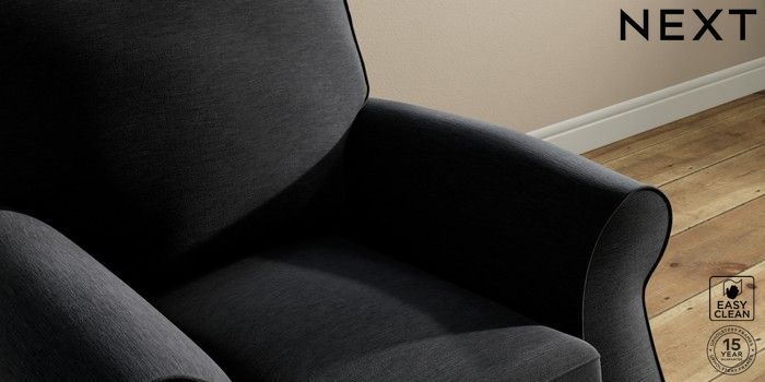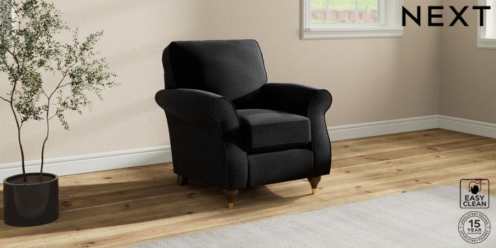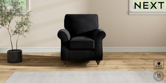 7.2.10 Ashford Small Armchair Fine Chenille Easy Clean Black Modern Turned Metal Cap - Mid | Made Click here to use our website with more accessibility support, for example screen readers