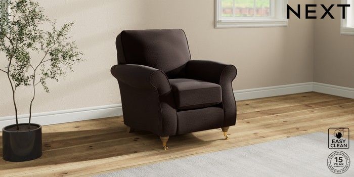 7.2.10 Ashford Small Armchair Fine Chenille Easy Clean Chocolate Brown Castor - Light | Made Click here to use our website with more accessibility support, for example screen readers