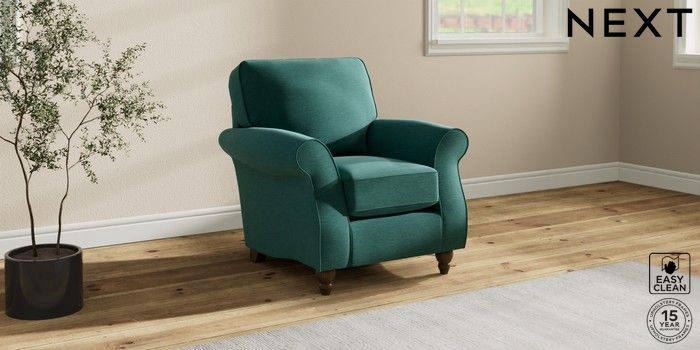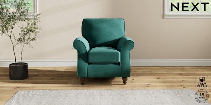 7.2.10 Ashford Small Armchair Fine Chenille Easy Clean Dark Juniper Green Low Turned - Mid | Made Click here to use our website with more accessibility support, for example screen readers
