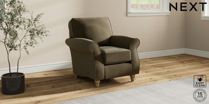 7.2.10 Ashford Small Armchair Fine Chenille Easy Clean Dark Moss Green Low Turned - Light | Made Click here to use our website with more accessibility support, for example screen readers