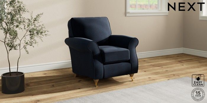 7.2.10 Ashford Small Armchair Fine Chenille Easy Clean Dark Navy Blue Castor - Light | Made Click here to use our website with more accessibility support, for example screen readers
