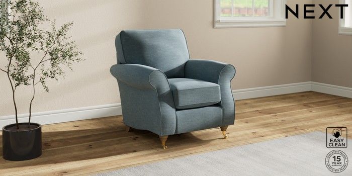 7.2.10 Ashford Small Armchair Fine Chenille Easy Clean Mid Blue Castor - Light | Made Click here to use our website with more accessibility support, for example screen readers