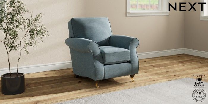 7.2.10 Ashford Small Armchair Fine Chenille Easy Clean Mid Blue Castor - Mid | Made Click here to use our website with more accessibility support, for example screen readers