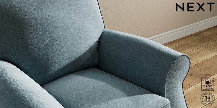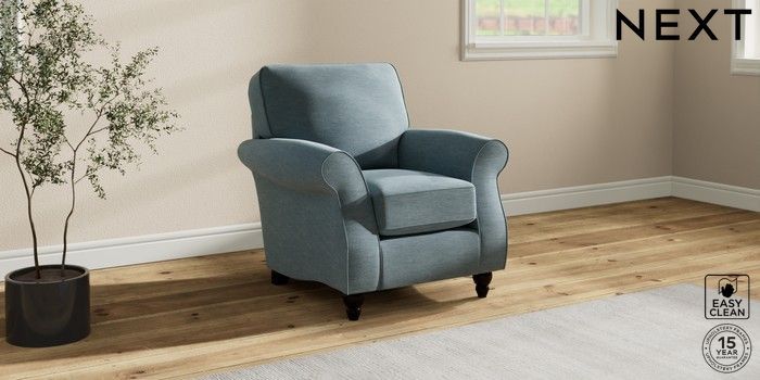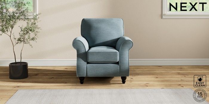 7.2.10 Ashford Small Armchair Fine Chenille Easy Clean Mid Blue Low Turned - Dark | Made Click here to use our website with more accessibility support, for example screen readers
