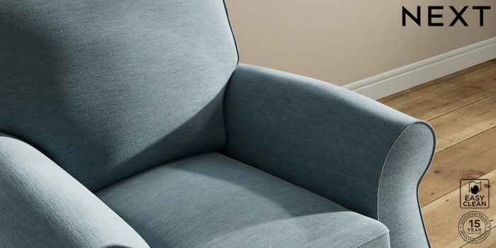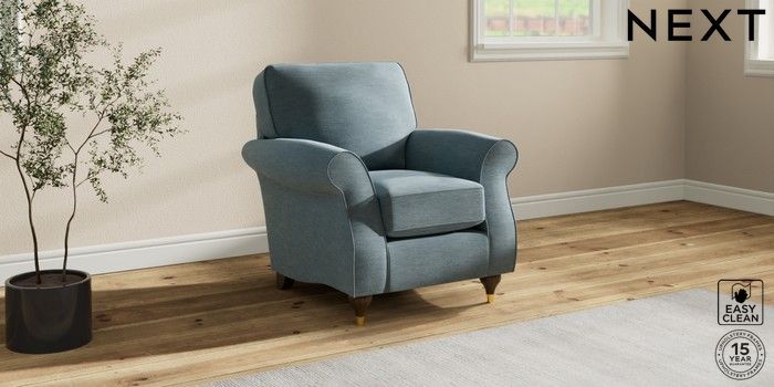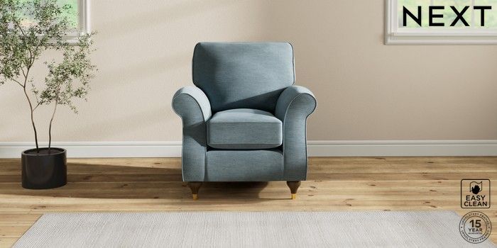 7.2.10 Ashford Small Armchair Fine Chenille Easy Clean Mid Blue Modern Turned Metal Cap - Mid | Made Click here to use our website with more accessibility support, for example screen readers