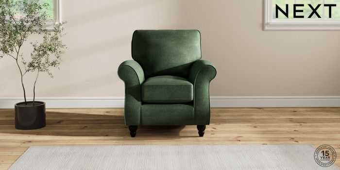 7.2.10 Ashford Small Armchair Luxe Chenille Dark Green Low Turned - Dark | Made Click here to use our website with more accessibility support, for example screen readers