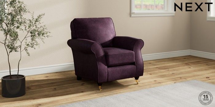 7.2.10 Ashford Small Armchair Plush Chenille Dark Plum Purple Castor - Dark | Made Click here to use our website with more accessibility support, for example screen readers