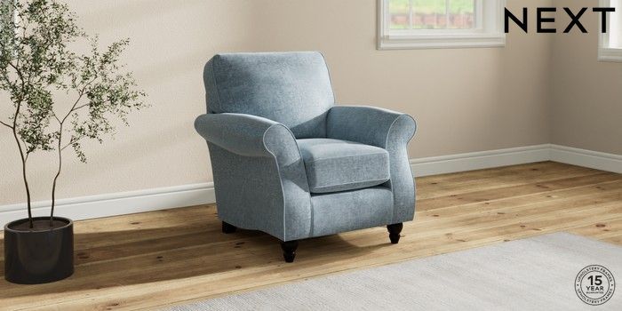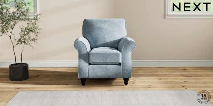 7.2.10 Ashford Small Armchair Plush Chenille Light Blue Low Turned - Dark | Made Click here to use our website with more accessibility support, for example screen readers