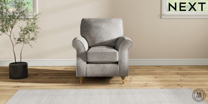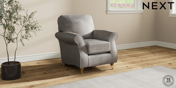 7.2.10 Ashford Small Armchair Plush Chenille Light Grey Castor - Light | Made Click here to use our website with more accessibility support, for example screen readers
