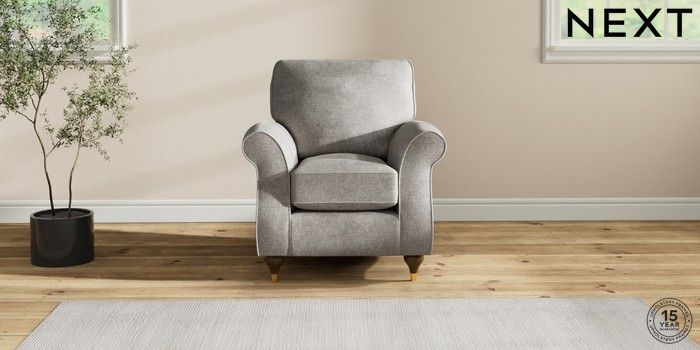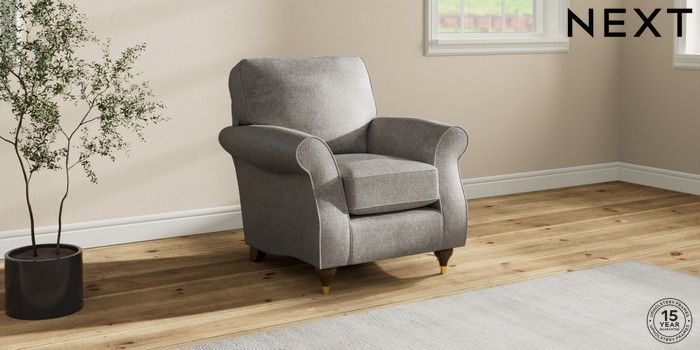 7.2.10 Ashford Small Armchair Plush Chenille Light Grey Modern Turned Metal Cap - Mid | Made Click here to use our website with more accessibility support, for example screen readers