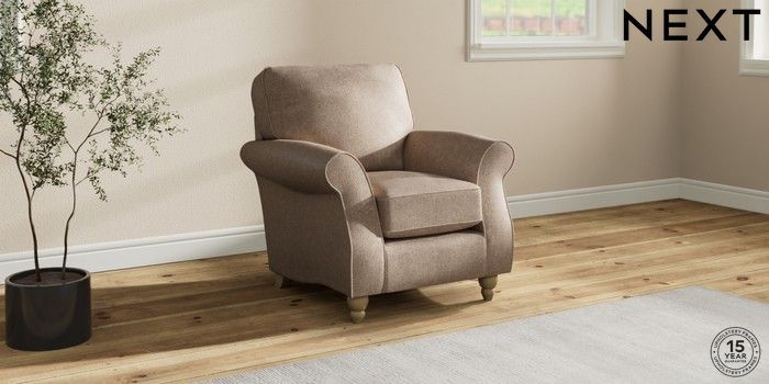 7.2.10 Ashford Small Armchair Plush Chenille Mid Natural Low Turned - Light | Made Click here to use our website with more accessibility support, for example screen readers