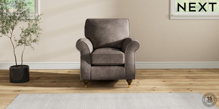 7.2.10 Ashford Small Armchair Plush Chenille Mink Brown Modern Turned Metal Cap - Mid | Made Click here to use our website with more accessibility support, for example screen readers