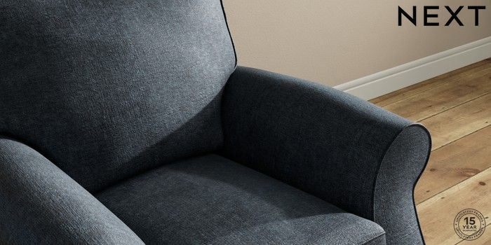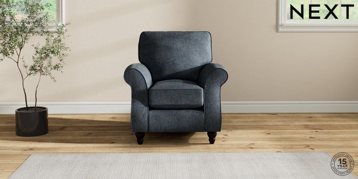 7.2.10 Ashford Small Armchair Plush Chenille Slate Blue Low Turned - Dark | Made Click here to use our website with more accessibility support, for example screen readers