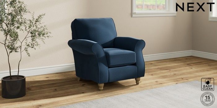 7.2.10 Ashford Small Armchair Plush Velvet Easy Clean Airforce Blue Low Turned - Light | Made Click here to use our website with more accessibility support, for example screen readers